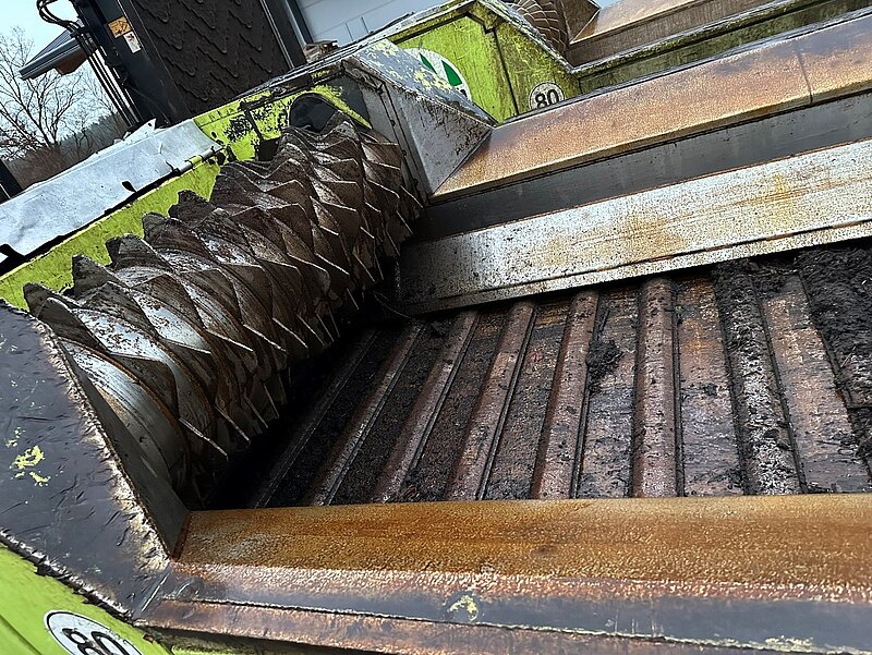 - hydraulisch klappbarer Feinzerkleinerungskorb (Maschengröße zwischen 30 - 280 mm, Abstufung auf Anfrage) inkl Heckklappe