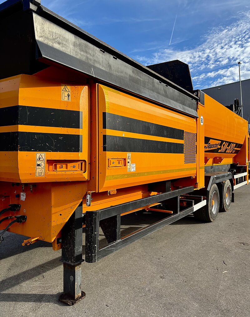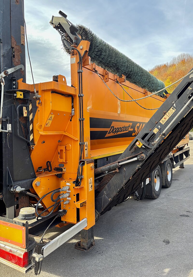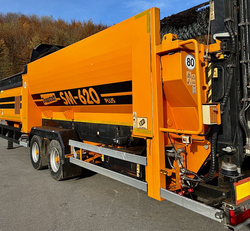 - Hydraulisch klappbares Heckband: Bandlänge 5.500 mm, Bandbreite 1.000 mm